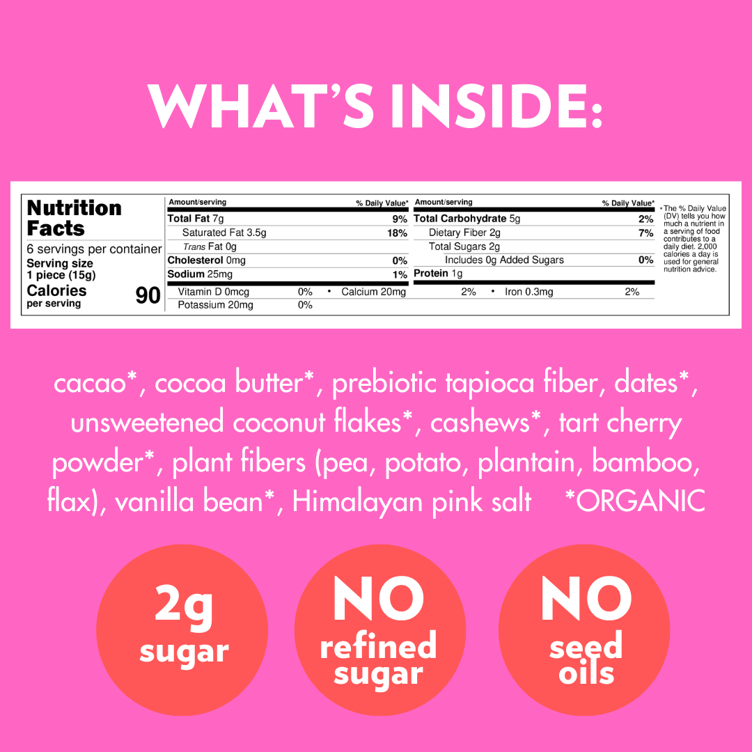 Dark Chocolate Cherry Cashew Butter has the perfect touch of sweetness thanks to the smooth, silky cherry coconut cashew filling!